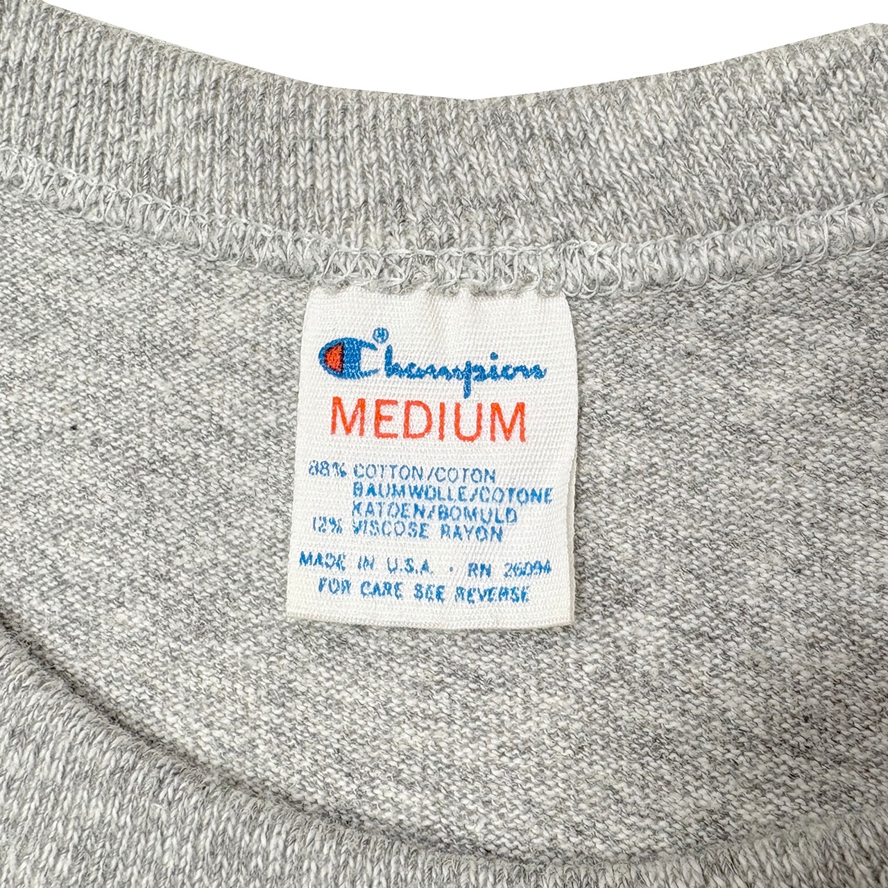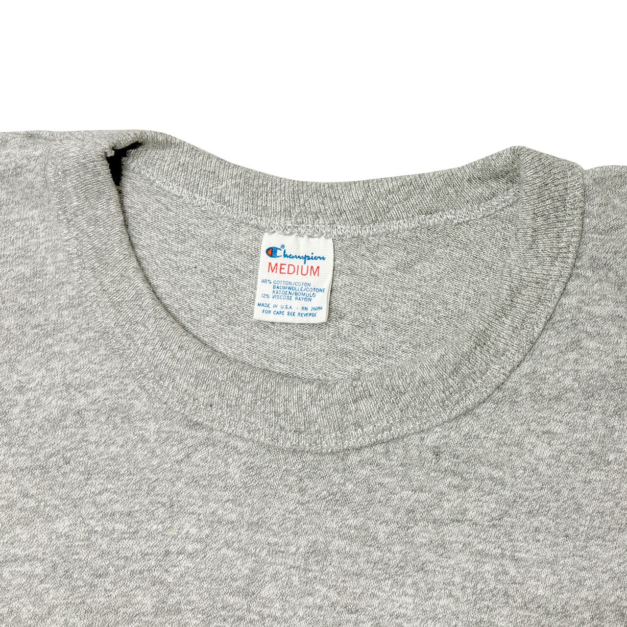 80s Champion チャンピオン S/S T-SHIRTS ショートスリーブ Tシャツ 88/12生地 col.HEATHER GRAY size:MEDIUM 染み込みプリント トリコタグ MADE IN U.S.A. 【VINTAGE ヴィンテージ】【中古】(VINCHA-TEE05) | TIMES ARE CHANGIN'