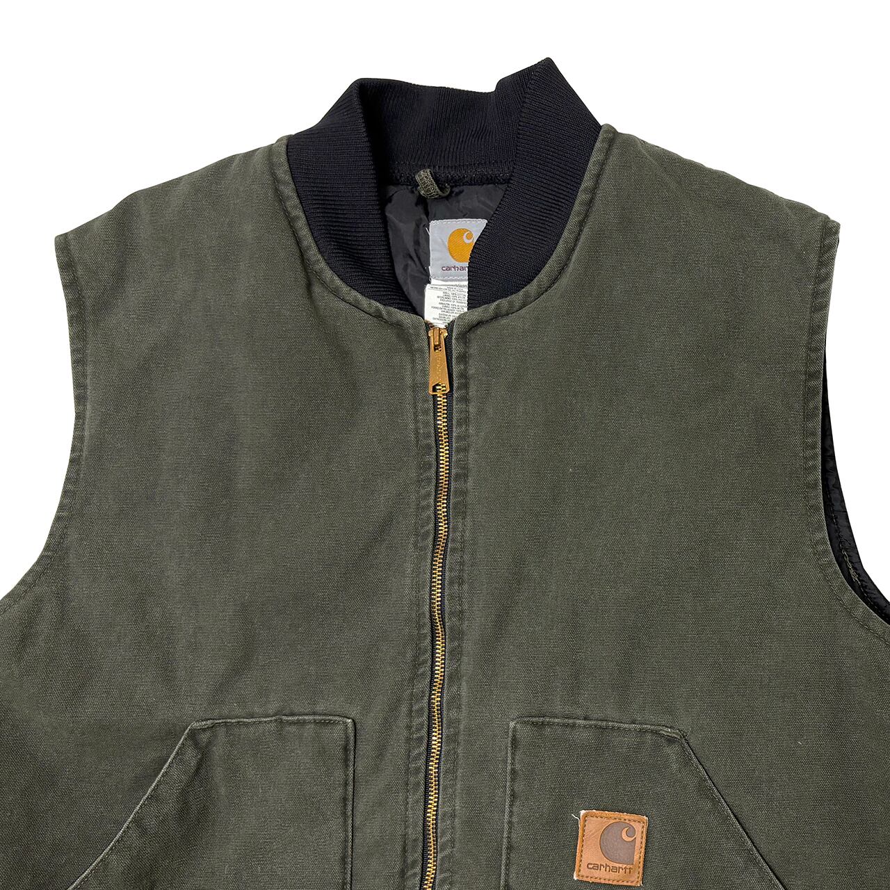 90s Carhartt カーハート Duck Vest ダックベスト col:OLIVE size:XXL REGULAR 裏キルティング ダック生地 Made in U.S.A. BIG SIZE ビッグサイズ 【VINTAGE ビンテージ】【中古】(VINCAR73)