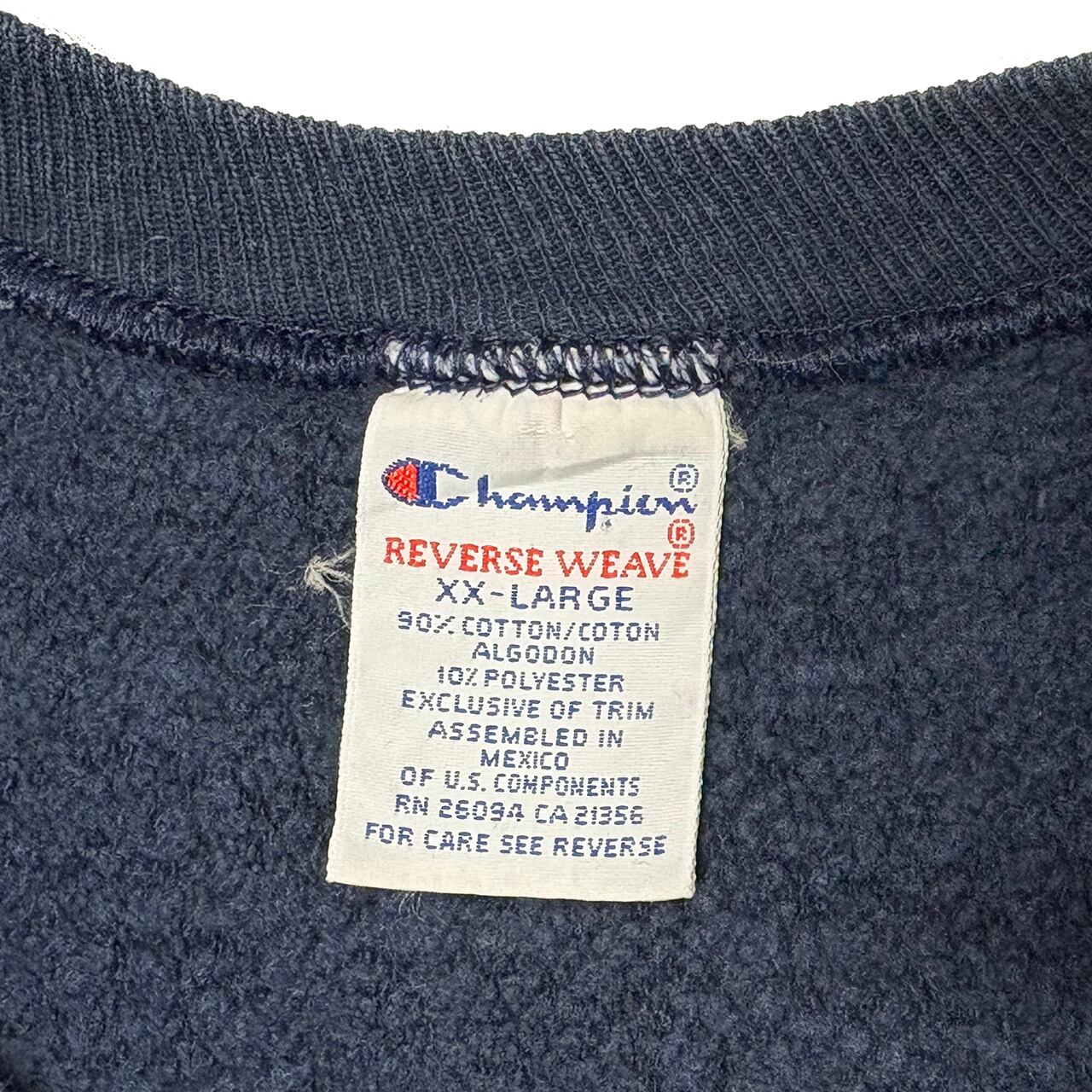 90s Champion チャンピオン REVERSE WEAVE CREW NECK SWEAT SHIRTS リバースウィーブ クルーネック スウェット シャツ col:NAVY size:XX-LARGE 3段プリント 刺繍タグ 【VINTAGE ヴィンテージ】【中古】(VINCHA173)