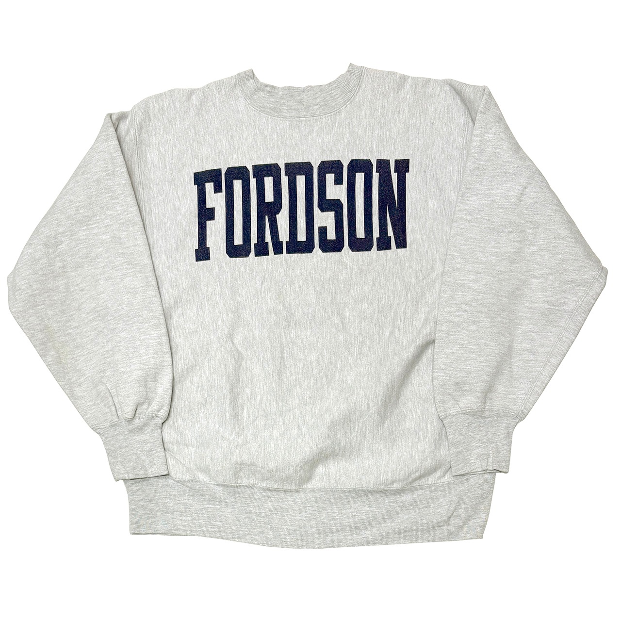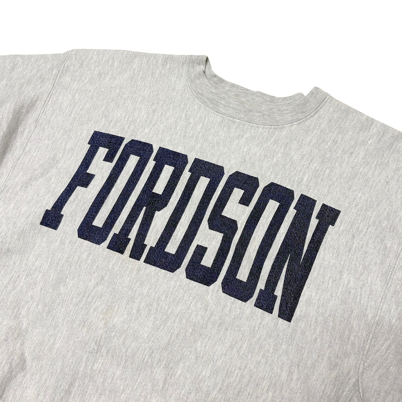 80s 初期 Champion チャンピオン REVERSE WEAVE CREW NECK SWEAT SHIRTS リバースウィーブ クルーネック スウェット シャツ col:GRAY size:X-LARGE 染み込みプリント FORDSON Made in U.S.A. 【VINTAGE ヴィンテージ】【中古】(VINCHA192) | TIMES ARE CHANGIN'