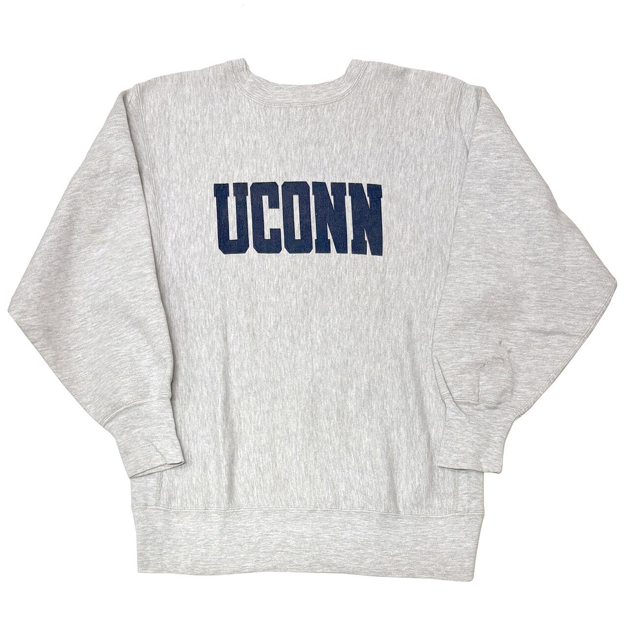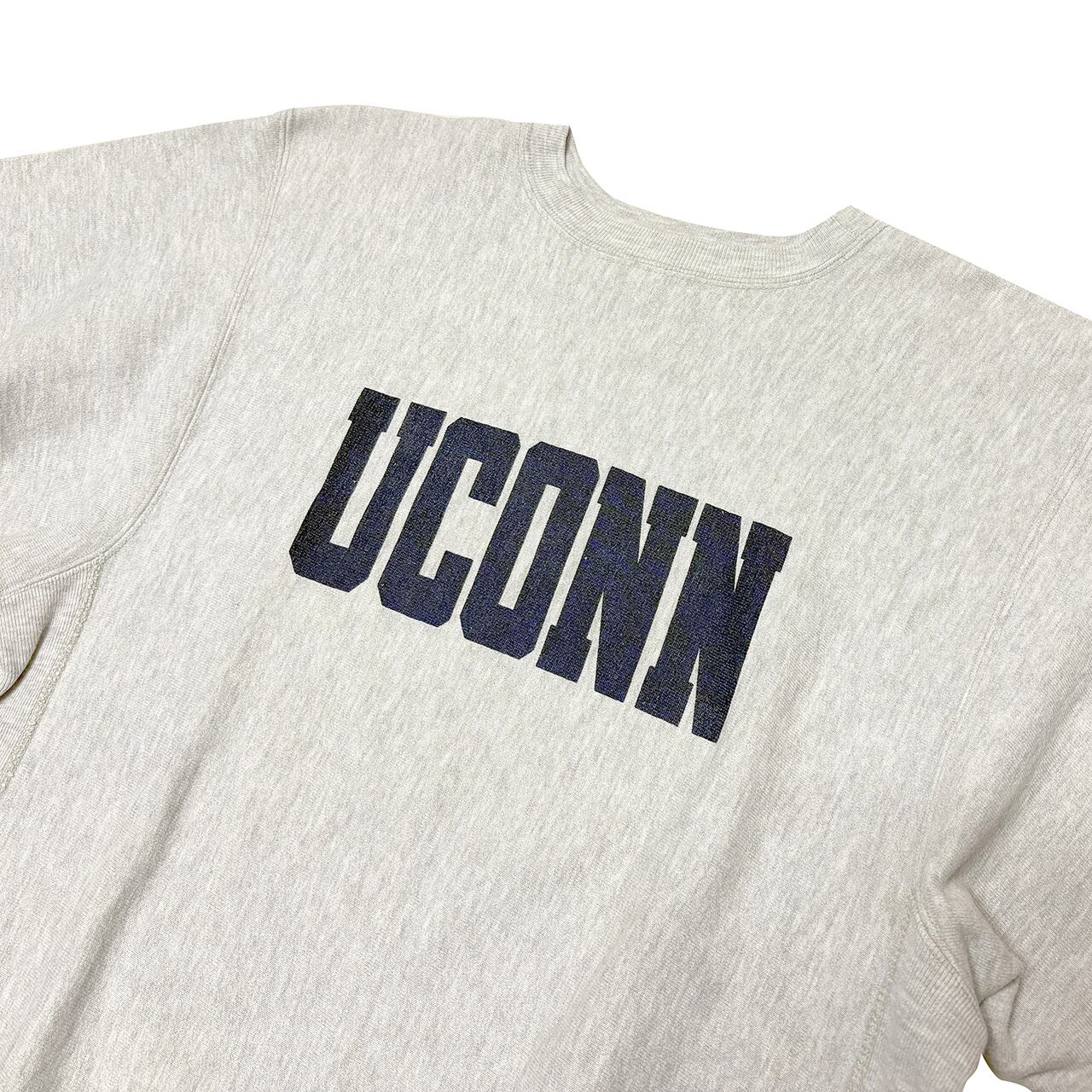 90s Champion チャンピオン REVERSE WEAVE CREW NECK SWEAT SHIRTS リバースウィーブ クルーネック スウェット シャツ col:GRAY size:X-LARGE 染み込みプリント UCONN コネチカット大学 Made in U.S.A. 【VINTAGE ヴィンテージ】【中古】(VINCHA194) | TIMES ARE CHANGIN'