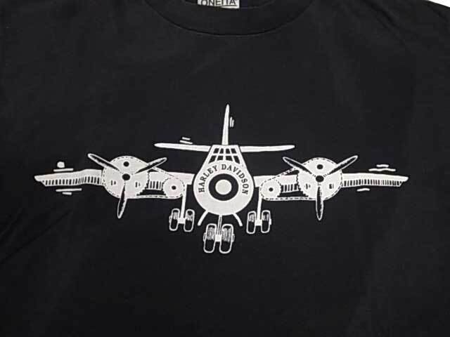 HARLEY DAVIDSON ハーレーダビッドソン 飛行機 Tシャツ ONEITA color:Black size:M Made in USA 【Vintage ヴィンテージ】【中古】(USEDSS07)