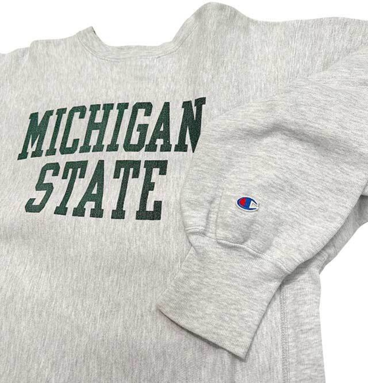 90's CHAMPION チャンピオン REVERSE WEAVE MICHIGAN STATE 染み込みプリント 刺繍タグ HEATHER GREY size XX-LARGE リバースウィーブ スウェット 【VINTAGE ヴィンテージ】【中古】(VINCHA58) | TIMES ARE CHANGIN'