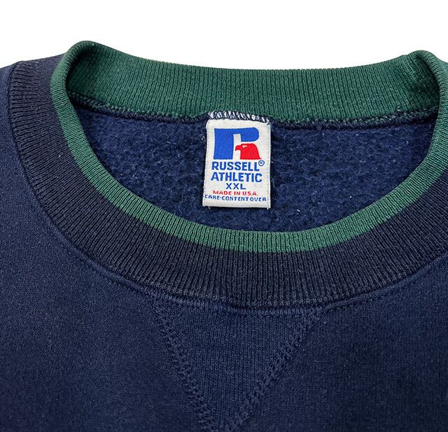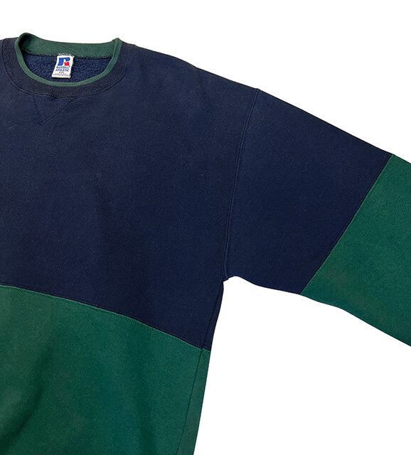90's RUSSELL ラッセル 2TONE SWEAT ツートーン スウェット NAVY/GREEN sizeXXL Made in USA アメリカ製 【UESD ユーズド】【中古】(USEDRA06)