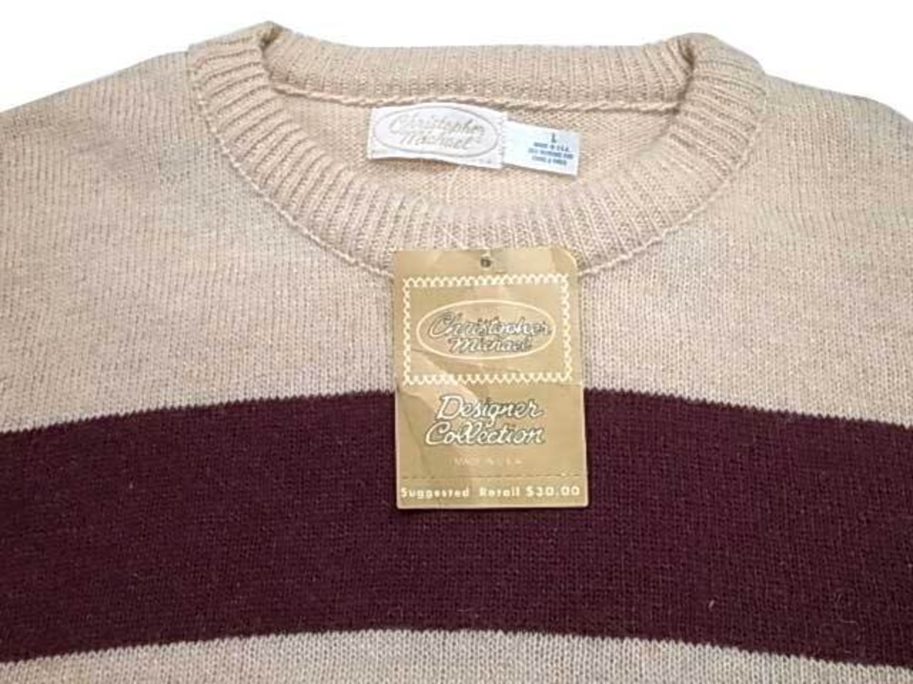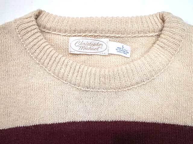 DEADSTOCK Christopher Michael クリストファー ミッチェル ボーダー セーター size:L color:BEIGE×BURGUNDY Made in USA デッドストック【OLD オールド】【中古】(VINCHRI01) | TIMES ARE CHANGIN'