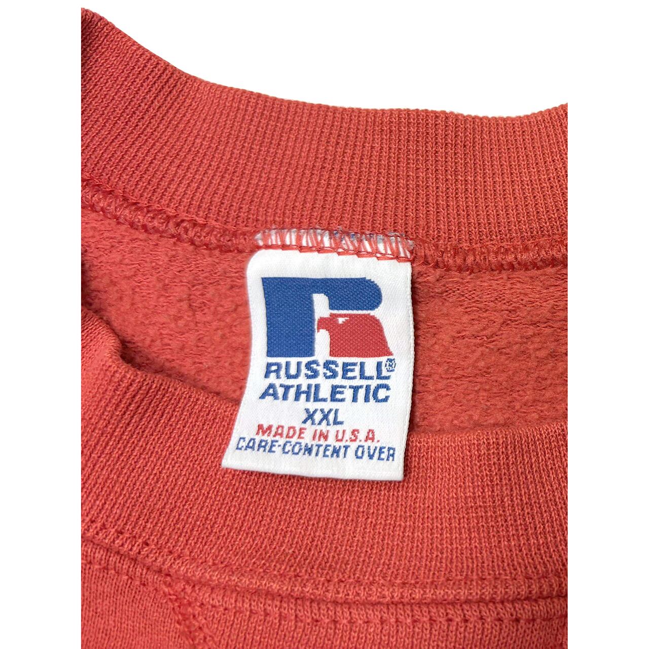 90s RUSSELL ATHLETIC ラッセル アスレチック CREW NECK SWEAT クルーネック スウェット ひび割れプリント col:RED size:XXL Made in USA アメリカ製 BIG SIZE 【VINTAGE ヴィンテージ】【中古】(USEDRA38)