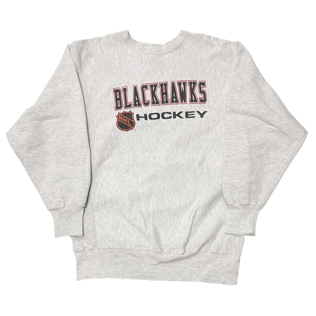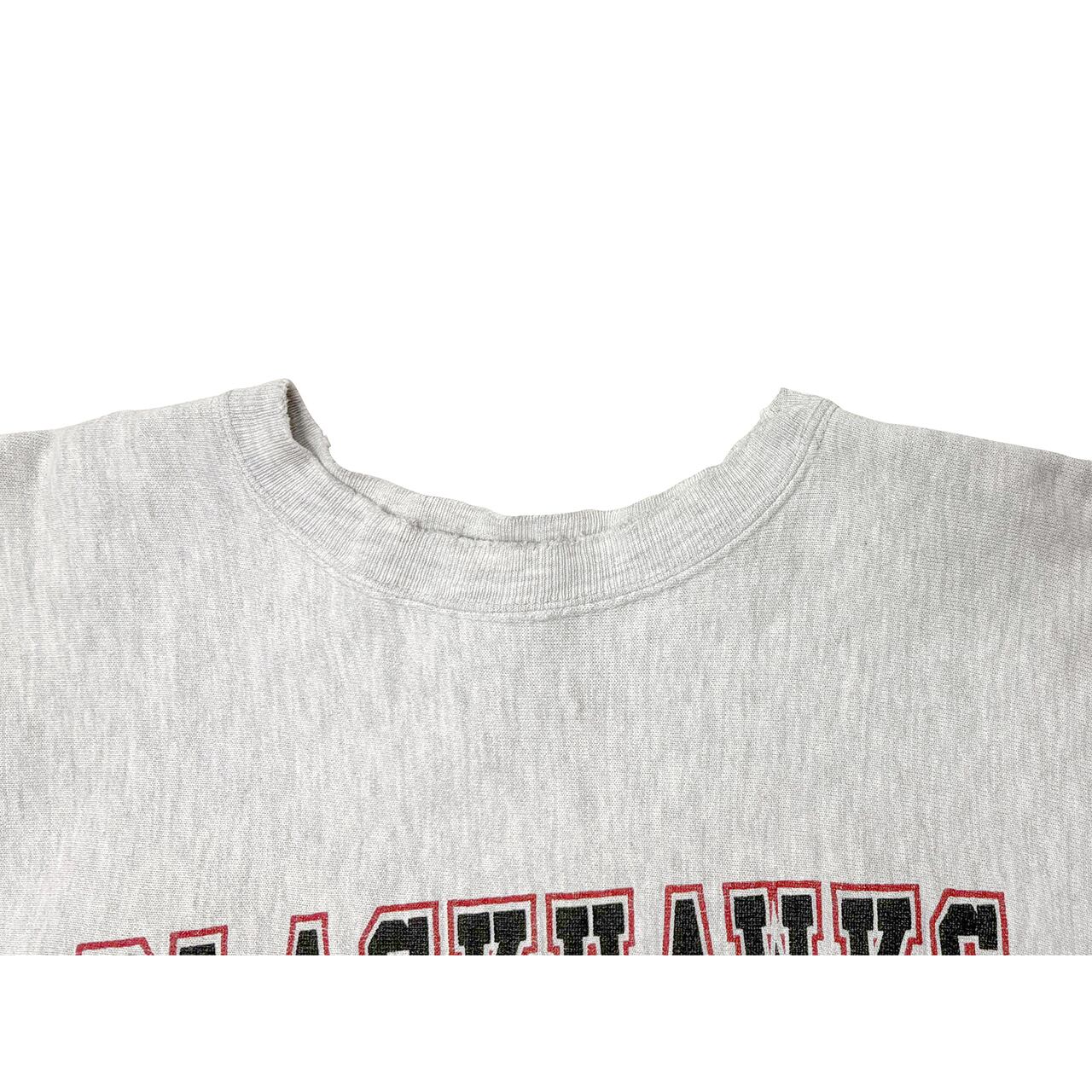 90s Champion チャンピオン REVERSE WEAVE CREW NECK SWEAT SHIRTS リバースウィーブ クルーネック スウェット シャツ col:GRAY size:XX-LARGE 刺繍タグ BLACKHAWKS MADE IN U.S.A. アメリカ製 BIG SIZE 【VINTAGE ヴィンテージ】【中古】 | TIMES ARE CHANGIN'