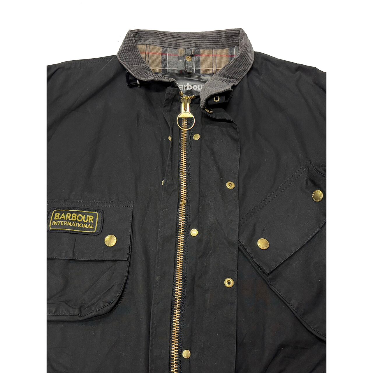 Barbour バブアー INTERNATIONAL インターナショナル col.BLACK size:50 ライダースジャケット ワックスコットン オイルドジャケット 3ワラント BIG SIZE 【USED ユーズド】【中古】(USEDBAR01)